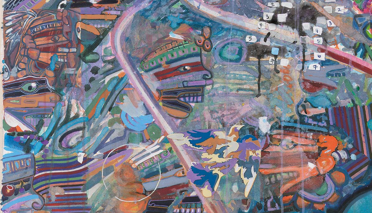 - tapescapemomaps1gny (detail), acrylic on canvas, 2024
