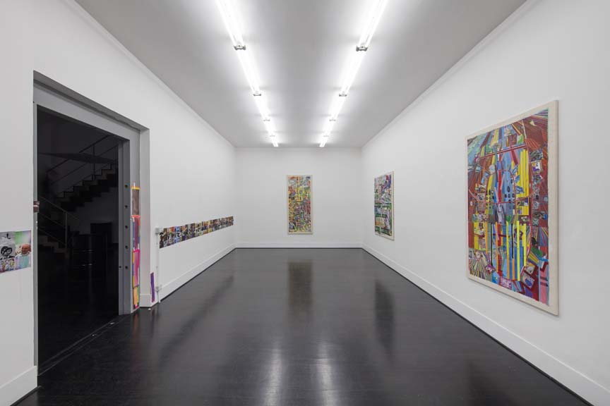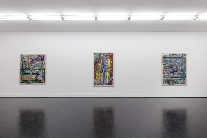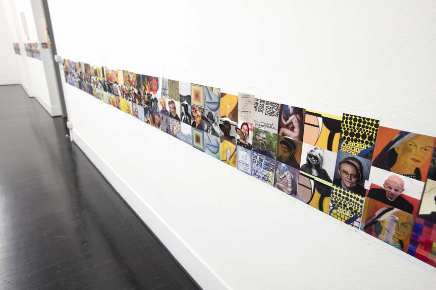 In selfportraitas I extend my use of art history in a series of paintings, each using as a primary structure another artist (e.g., Frank Stella), artwork (e.g., Gene Davis' Franklin's Footpath), or art historic moment (e.g., Futurism). I am interested both in the historic positioning of art along history's continuum and also in its dissolution in our hyper-image age. I work through artists I admire and/or seek to better understand the material and form from which it emerged, and I fold that study into my own work. In working through other art I free associate, imbibing the freedom to multi-directionally focus as the context of my study is altered by daily image feeds, the exhibitions I directly visit, and my reading. For example, in my selfportraitasfuturism or selfportraitasseverini, I started with a pixel grid scale up of a documentation image of my own 2018 watercolor cutoutastext, itself a work using Matisse's cutouts to propel its composition. Through the painting process I saw repetition and movement, which inspired me to visit MoMA to see some Futurist art. I focused on Severini's 1912 Dynamic Hieroglyphic of the Bal Tabarin, recognizing some parallels in its composition to my own working painting. At FL Gallery I emphasize the paintings as their own objects with a subtle acknowledgement of my larger painting installation practice. The installation will include a wall of prints of all the artists I referenced in making these paintings. The representations of these artists (mostly photographic) look directly at representations of themselves. Nearly eighty artists are referenced in these paintings (from Titian and Matisse to Dana Schutz and Laura Owens), and also include four of my own undergraduate Cooper Union painting students, a leveling of the traditional hierarchy. Artists referenced in selfportraitas: Josef Albers, Lewis Baltz, Mel Bochner, Pierre Bonnard, Alex Brown, Joan Brown, Mathew Cerletty, Paul Cezanne, Amanda Church, Chuck Close, Matt Connors, Gene Davis, Giorgio de Chirico, Willem de Kooning, David Deutsch, John Dilg, Lois Dodd, Peter Doig, Lydia Dona, Rosalyn Drexler, Marcel Duchamp, Marlene Dumas, Carroll Dunham, Franklin Evans, Tony Feher, Liana Finck, Matthew Fisher, Caspar David Friedrich, Casey Gallagher, Jackie Gendel, Sam Gilliam, Elliott Green, Mimi Gross, Josephine Halvorson, Valerie Hegarty, Braden Hollis, Jacqueline Humphries, Anthony Iacono, David Jacobs, Jasper Johns, Alex Katz, Nicholas Krushenick, Federico Luger, Henri Matisse, Joan Miro, Piet Mondrian, Carrie Moyer, Elizabeth Murray, Thomas Nozkowski, Jim Nutt, Joe Overstreet, Laura Owens, Nicolas Party, Sarah Peters, Pablo Picasso, Sigmar Polke, Arthur Rimbaud, Dana Schutz, Georges Seurat, Gino Severini, Sylvia Sleigh, Josh Smith, Frank Stella, Robert Swain, Bob Thompson, Titian, Amelie von Wulffen, Wendy Wahlert, John Wesley, Terry Winters, Karl Wirsum, Ludwig Wittgenstein, David Wojnarowicz, Eric Wolf, Grant Wood, Alexi Worth, Paul David Young, and Zoe Zirsen. During the development of this exhibitions, I received generous support from Pollock-Krasner Foundation. Link to FL Gallery selfportraitas, 2018 PRESS RELEASE